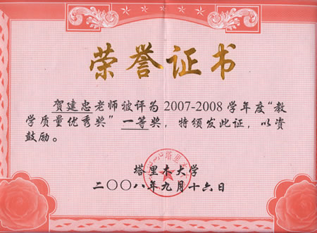 2007-2008学年塔里木大学教学质量一等奖