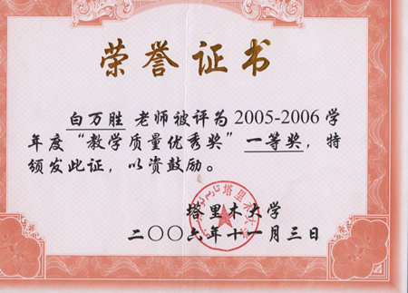 2005-2006学年塔里木大学教学质量一等奖