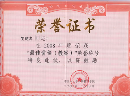 2008年动物科学学院“最佳教案、讲稿”